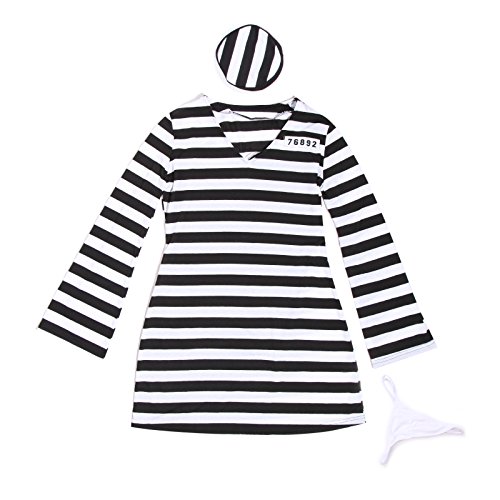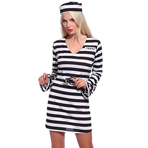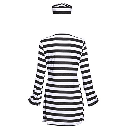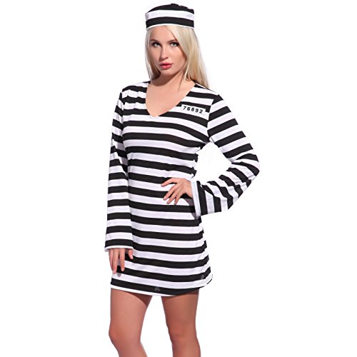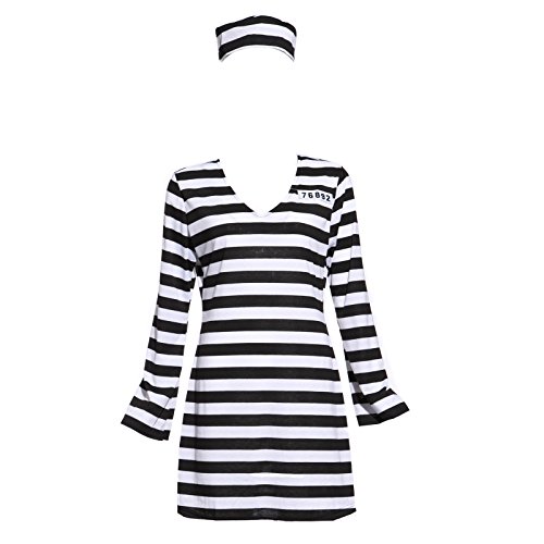 -. Brand : Fashoutlet -. Color : Black and White -. Department : womens -. Feature : Convicts were dressed in black and white striped suits to make escape more difficult, as it is difficult for an escaped inmate to avoid recognition and recapture in such distinctive attire. / The criminal dress is completed by a matching black and white striped hat. Ready for a party tonight! / Standard Size (Recommended for US 2-8): Bust 80-95cm / 31.2-37.1¡±, Sleeve 60cm / 23.4¡±, Length 80cm / 31.2¡±, Shoulder width 38cm / 14.8" / Plus Size (Recommended for US 10-14): Bust 96-105cm / 37.4-41¡±, Sleeve 62cm / 24.2¡±, Length 82cm / 32¡±, Shoulder width 42cm / 16.4" / Package: 1 x Dress; 1 x Hat -. ProductGroup : Apparel -. ProductTypeName : ADULT_COSTUME -. Title : Fashoutlet Women Ladies Jail Prisoner Convict Striped Uniform Cosplay Costume