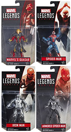 -. Feature : Marvel Comics Detailed Legend Series Action Super Hero Figures 4-pack / Marvel Legends 3.75" Spider-Man Iconic figure with classic design The figure is highly detailed and sculpted / Armored Spider-Man has Ultimate defense with his indestructible armor Legends action figure / Iron Man Gray Iron Man jets through the sky armed with high-tech weapons / Marvel's Quasar with Superhuman energy shoots through the sky faster than the speed of light