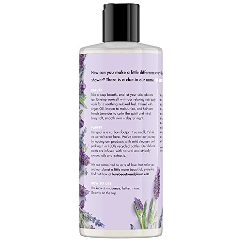 - Love Beauty and Planet Argan Oil & Lavender Body Wash moisturizes and envelops your skin in a soothing relaxed feel