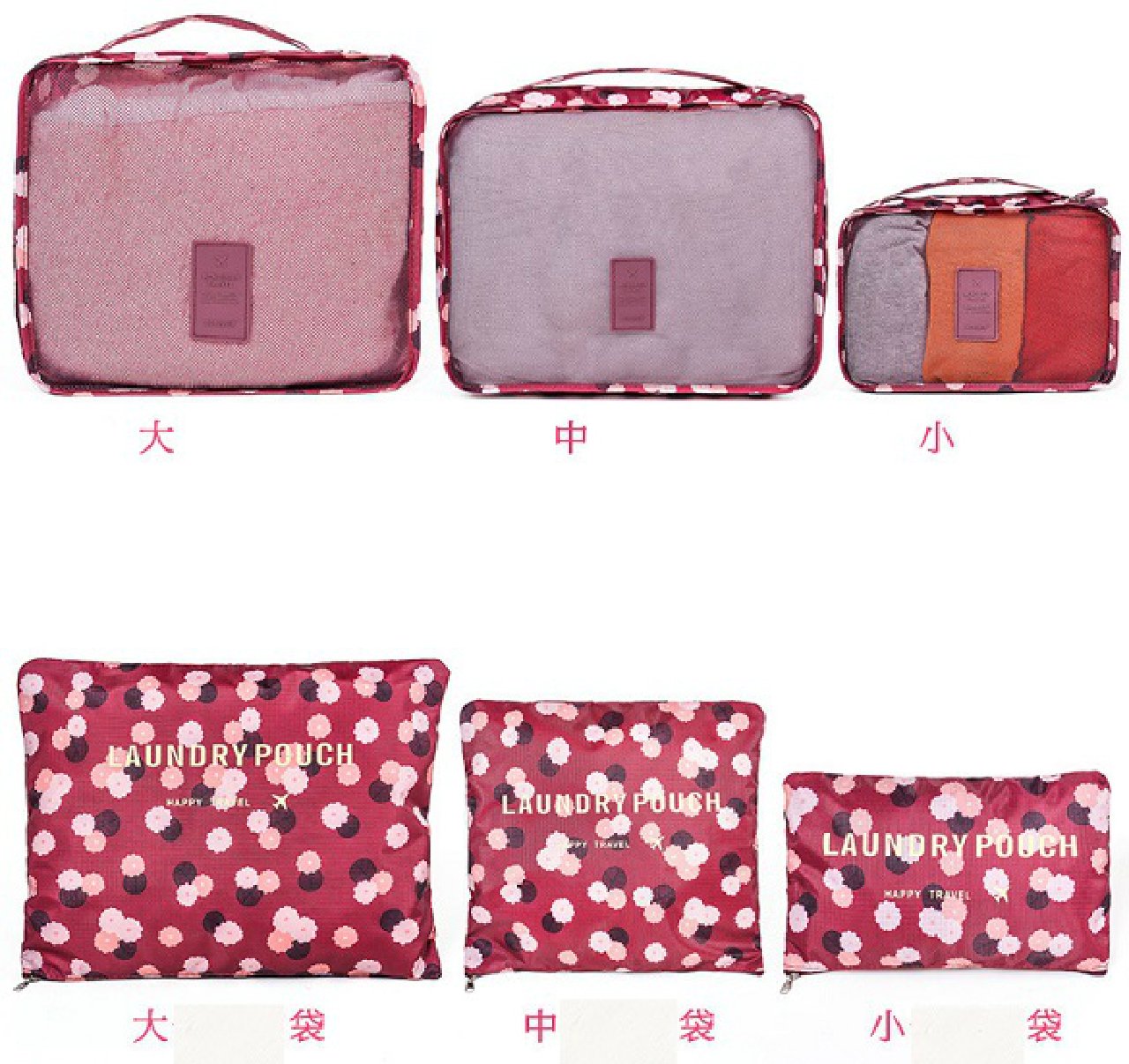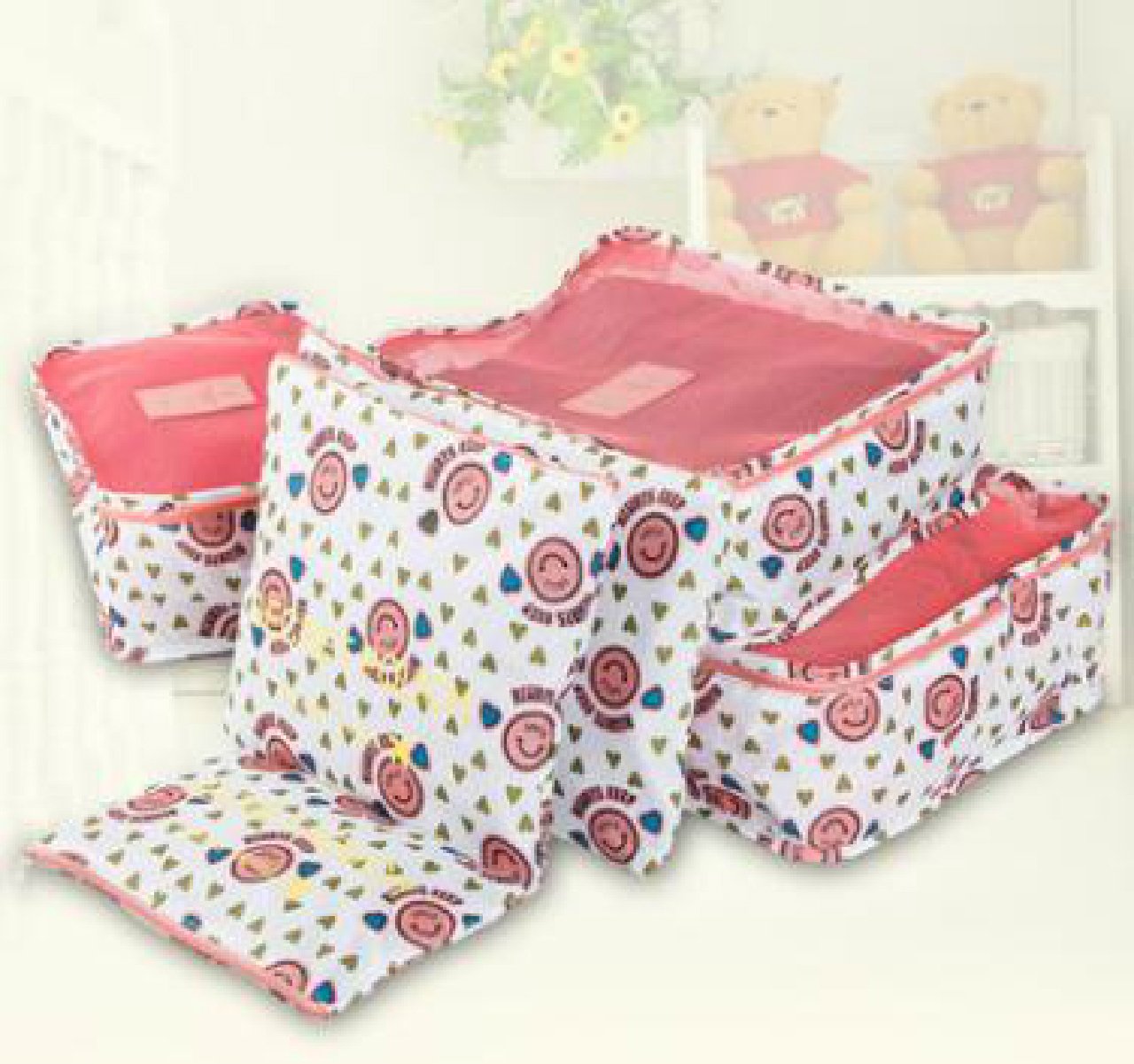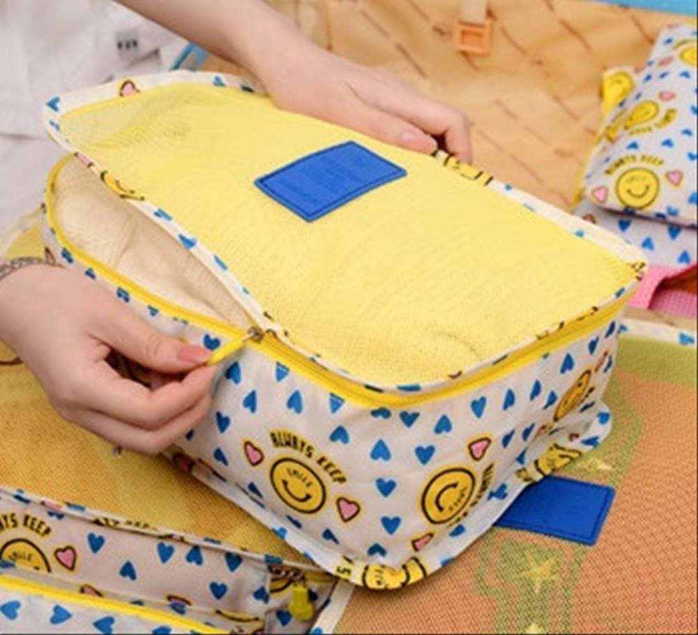 Pop pattern travel pouch 6 point set travel arrangement case Yellow smile pattern