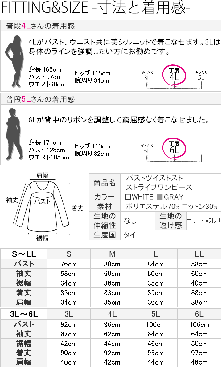 | 【ご注意】 ・着用感は各モニターさんの見解をそのまま掲載させて頂いております。 ・着用感は個人によって違いがでることがございます。 ・生地の伸縮により若干の誤差及びタグの表記とは異なる場合があります。 ・画像はお使いPCやスマートフォンにより色が異なる事があります。 ・ご注文完了後のご交換・キャンセル・及び不良品以外のご返品・ご交換はお受け致しておりません。 ・お申し込みの際は、サイズ・カラー等よくご確認の上、ご注文くださいますようお願い申し上げます。 大きいサイズ/レディース/ワンピース/S/M/L/LL/3L/4L/5L |