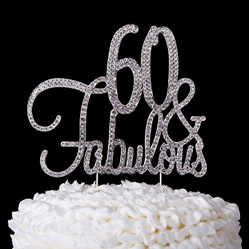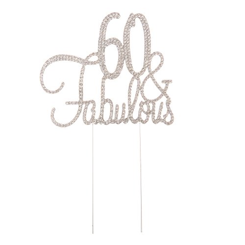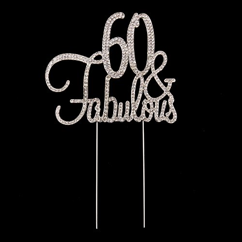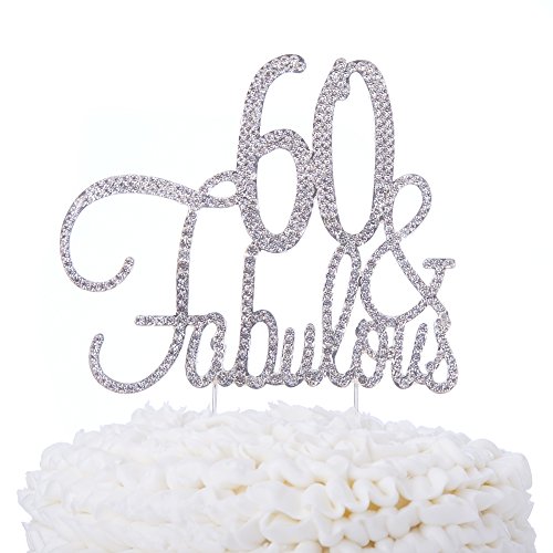 60 & Fabulous Cake Topper 60th Birthday Party Supplies Silver Decoration (Silver)