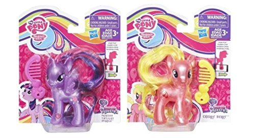 Build a world of favorite My Little Pony friends and keep their beautiful hair looking beautiful! This My Little Pony Explore Equestria set includes Princess Twilight Sparkle and Cherry Berry, and each features a pearlescent, glittery body and comes with a colorful comb! Comb and style their long hair and keep them looking their best. Scan the pony figures' codes to unlock more fun in the My Little Pony Friendship Celebration app.Feature