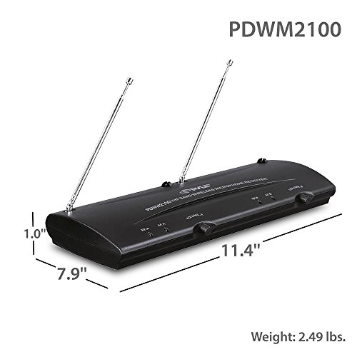 Item Weight:2 pounds Product Dimensions:14.6 x 2.3 x 11 inches Shipping Weight:2.07 pounds (View shipping rates and policies) Domestic Shipping:Item can be shipped within U.S. International Shipping:This item is not eligible for international shipping. Learn More Shipping Advisory:This item must be shipped separately from other items in your order. Additional shipping charges will not apply. ASIN:B003GEJ5SK Item model number:PDWM2100 Batteries:2 AA batteries required. Customer Reviews:3.3 out of 5 stars 667 customer reviews 3.3 out of 5 stars Best Sellers Rank:#18,255 in Musical Instruments (See Top 100 in Musical Instruments) #170 in Musical Instruments > Live Sound & Stage > Microphones > Wireless Microphones & Systems > Handheld Wireless Microphones #6,353 in Musical Instruments > Recording Equipment Date first listed on Amazon:AP.R.Il 9, 2010