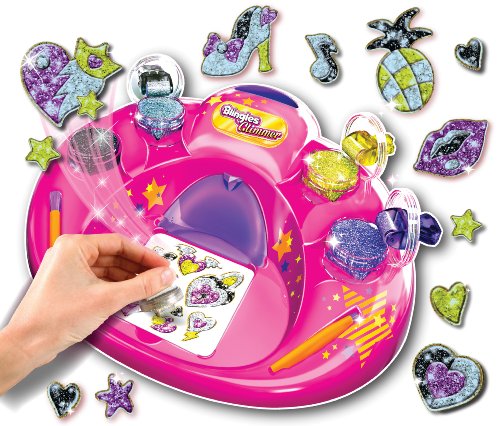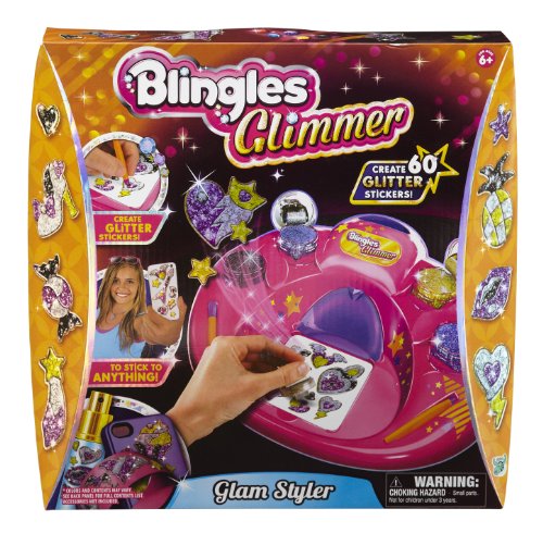 Dust on the diamonds and bring bling to a whole new level. With Blingles Glimmer Glam Styler, girls can create and design their own glittering stickers that stick to any smooth surface. Complete with four different glitter colors, gems, a glitter roller glimmer pen and brush. Simply pick from a fun range of cute stickers, choose your glitter colors and get sparkled. Finish off your design using some Blingles Gems and your stickers are transformed from drab to fab.