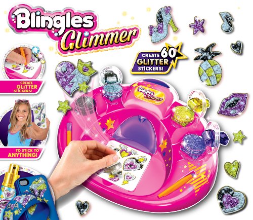 Blingles Glimmer lets girls add glamour to their sticker designs in a whole new way. Simply pick from a fun range of cute stickers, choose your glitter colors and get sparkled. Finish off your design using some Blingles Gems and your stickers are transformed from drab to fab. Designed to stick on almost any smooth surface, let Blingles Glimmer sparkle up your world today.