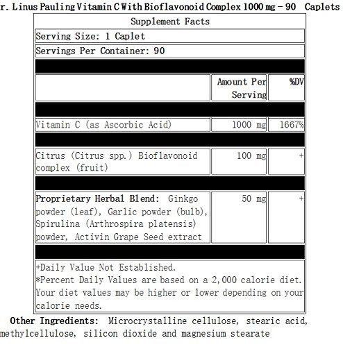 -. Binding : Health and Beauty -. Brand : Dr. Linus Pauling -. EAN : 0710363253172 -. Feature : Vitamin C is an important antioxidant that neutralizes free radicals which cause cellular damage in the body and contribute to the aging process / Dr. Linus Pauling -. IsAdultProduct : 0 -. IsAutographed : 0 -. IsMemorabilia : 0 -. Label : Dr. Linus Pauling -. LegalDisclaimer : Unless otherwise noted, this item has not been evaluated by the United States Food and Drug Administration. It is not approved to diagnose, treat, cure or prevent disease. -. Manufacturer : Dr. Linus Pauling -. Model : 710363253172 -. MPN : 710363253172 -. NumberOfItems : 1 -. PackageQuantity : 1 -. PartNumber : 710363253172 -. ProductGroup : Health and Beauty -. ProductTypeName : HEALTH_PERSONAL_CARE -. Publisher : Dr. Linus Pauling -. Size : 90 -. Studio : Dr. Linus Pauling -. Title : Dr. Linus Pauling Vitamin C with Bioflavonoid Complex -- 1000 mg - 90 Caplets -. UPC : 710363253172