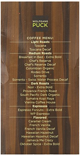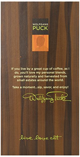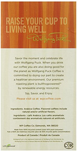 ReleaseDate : 2008-07-08 Studio : Wolfgang Puck Publisher : Wolfgang Puck Binding : Grocery Product Description This classic flavored coffee is great for dessert, or as a treat throughout the day. All Wolfgang Puck Coffees are estate grown at high altitudes where the coffee cherries ripen slowly to allow their unique flavors and aromas to fully develop. Our coffees are selected from the top 5% of the world's coffee production, then blended and roasted according to Wolfgang's personal recipe. 0