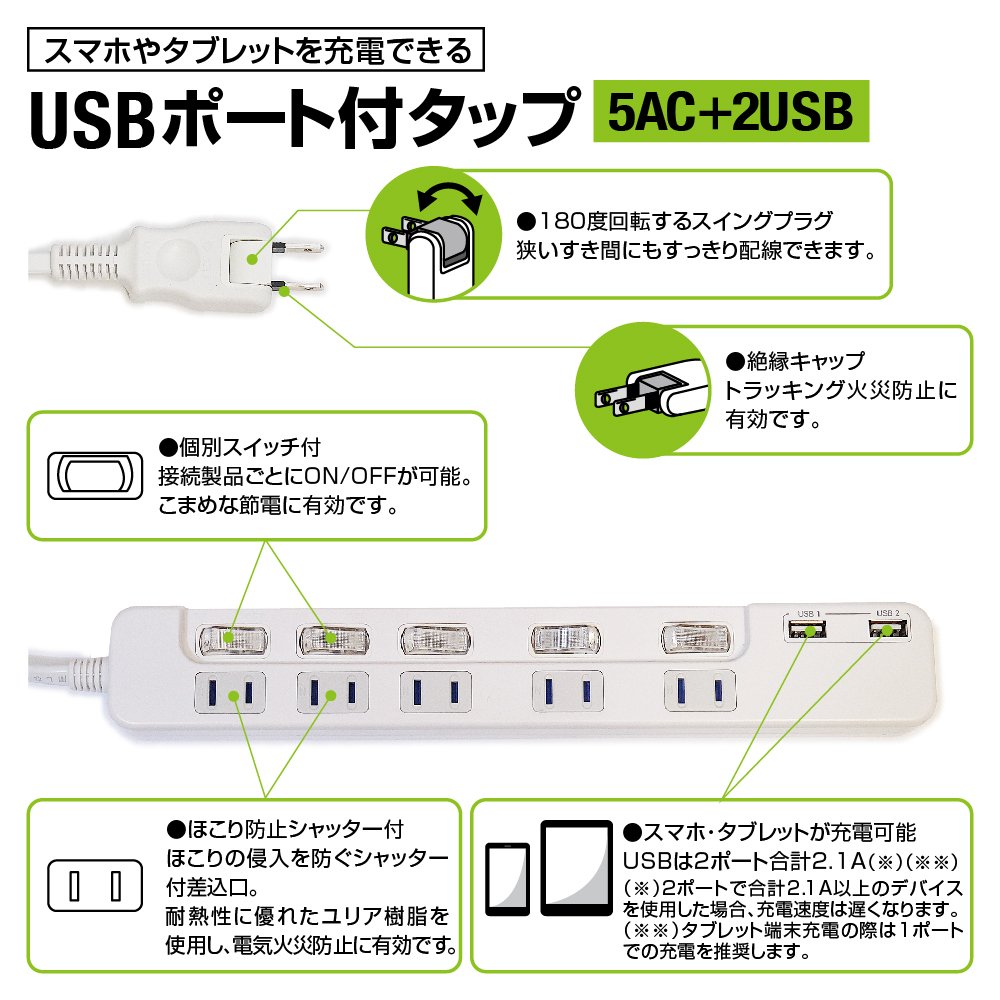 ● Because it has individual switches, it is useful for frequent power saving.