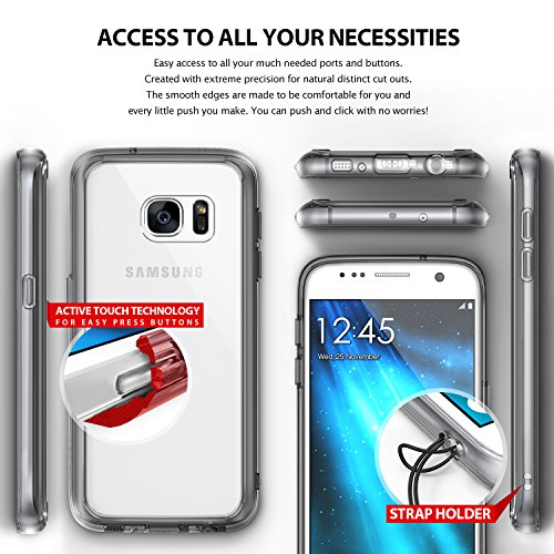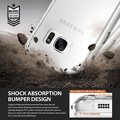 - Feature : Fits perfectly on the Samsung Galaxy S7 (Not for Samsung Galaxy S7 Edge). Available in multiple color bumper finish styles to show off your unique style and passion for trend. Highest quality clear case comes outfitted with laser precise clean bumper in your choice of accent color. / Crystal clear protection with advanced 2X clarity coating enhances the Samsung Galaxy S 7 original look with minimal bulk. The inside TPU corner cushions protect the Galaxy S7 from drops, while offering ultimate slimness. / Ultra slim transparent TPU bumper with Active Touch Technology allows easy and natural access to all essential ports and buttons. Soft flexible premium edges cover all four corners with rear guards and tapered lips to offer vital lift design for daily usage scratches. / Attached Dust Caps protect charging ports and audio jacks from dust and dirt. Ringke's highest engineering technology for precise tailored cutouts and dust caps are designed for impeccable perfect fit. No more tiny dust particles to attack your phone! / The possibilities are endless! Includes Free DIY template to customize and express your creativity for your perfect Galaxy S7 case. Keep the clean and pure look or create endless gorgeous designs with the free easy step DIY template included!