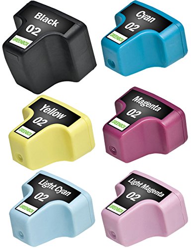 GREENBOX Compatible Ink Cartridge Replacement for HP 02 (1 Black, 1 Cyan, 1 Magenta, 1 Yellow, 1 Light Cyan, 1 Light Magenta, 6 Pack)