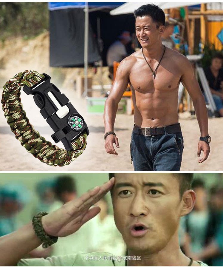 战狼2吴京同款手链指南针打火石可调节手绳户外生存求生工具套装