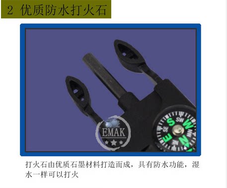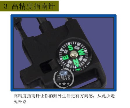 EK户外求生指南针手链 高精度迷你指南针口哨打火石手链 新品