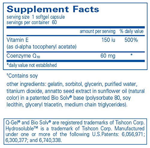 A critical factor in CoQ10 absorption is the surface area exposed to bile salts, the body's natural emulsifier. The patented Bio Solv® technology behind HydrosolubleTM Q-Gel® produces sub micron size CoQ10, increasing its surface area and exposure to bile salts for enhanced micellization and absorption. While this form does not require proximity to lipid containing meals, it is generally believed that taking it with meals will still offer the best bioavailability. Vitamin E is added to enhance the solubility of CoQ10.