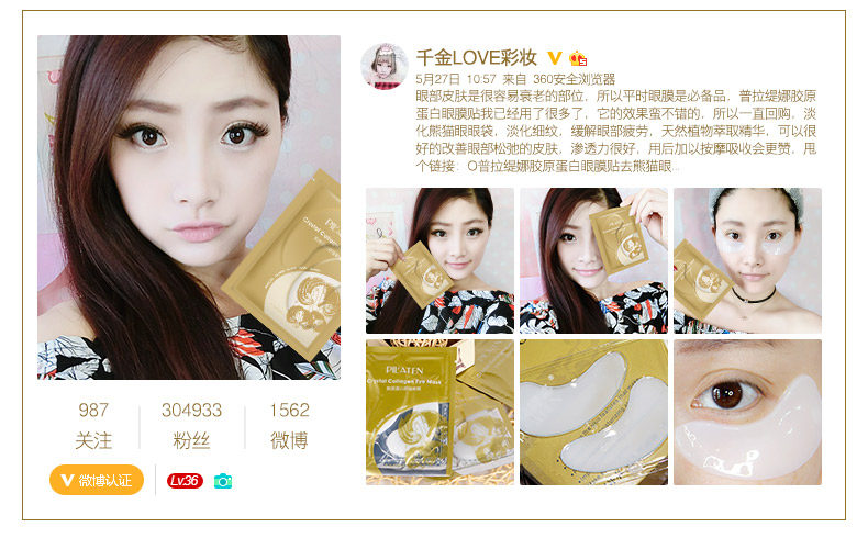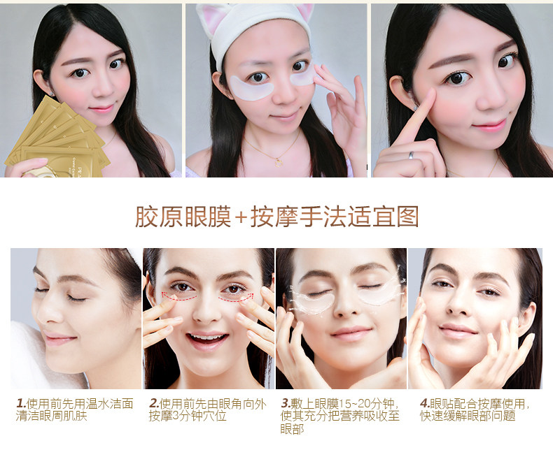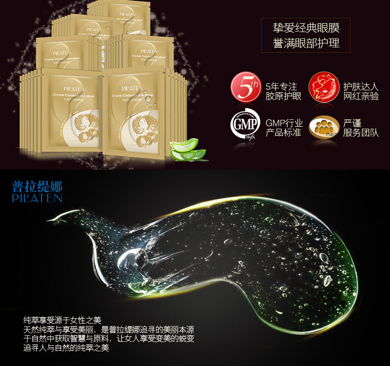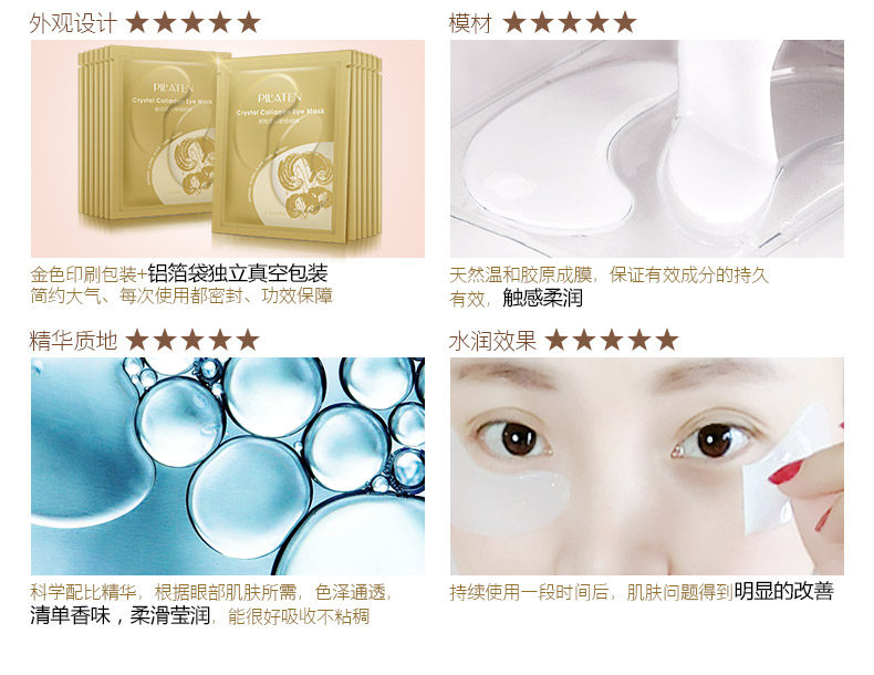 普拉缇娜胶原蛋白眼贴膜去淡化黑眼圈眼袋细纹紧致眼膜贴补水学生