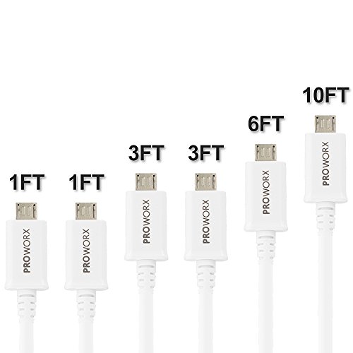 -. Title : Micro USB Cable, PROWORX [6-Pack] Short & Long Micro USB (1ft, 3ft, 6ft, 10ft) White Cable USB Micro Sync and Charging Charger Cables For Samsung, LG, Motorola, HTC, ZTE, Android Phones