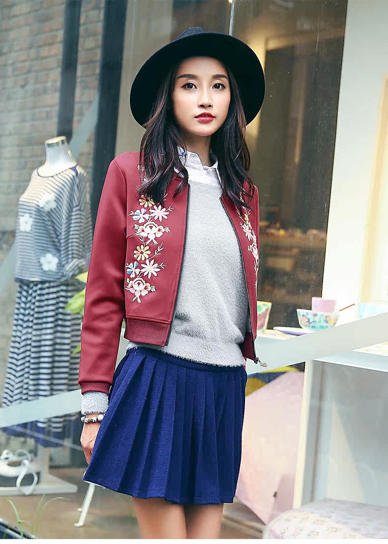假两件绣花领针织衫