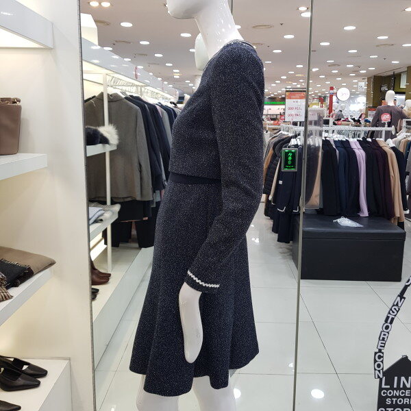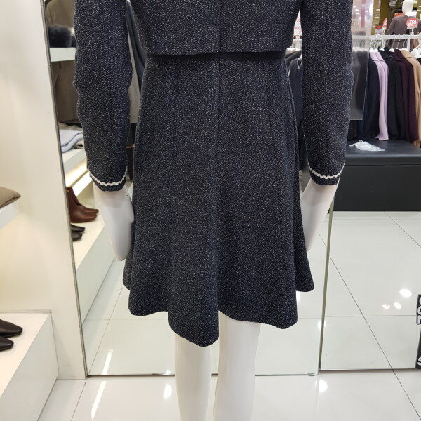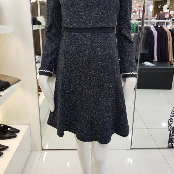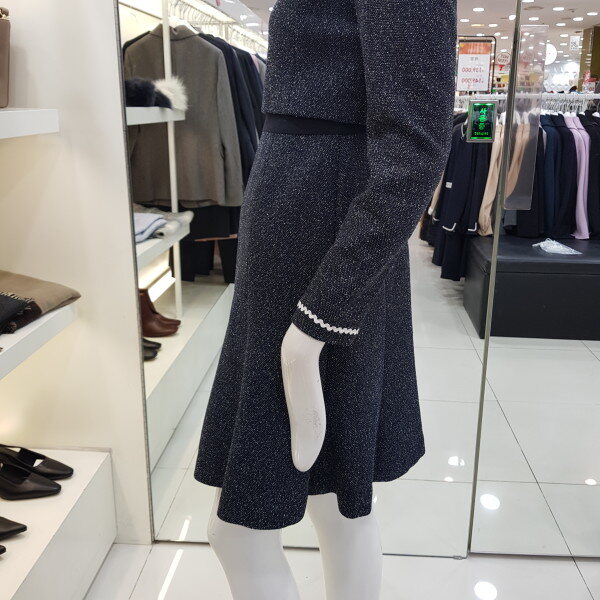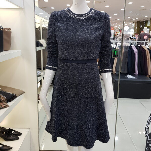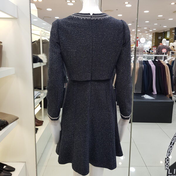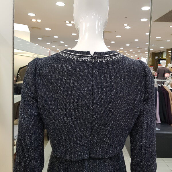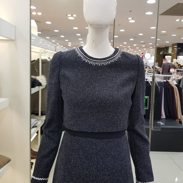 모직 혼방에 자수 스티치가 고급스러운 원피스입니다.투피스느낌의 덧장 디자인이 허리라인을더욱 슬림하게 보이는 여성스럽고 군더더기 없는 깔끔한 원피스입니다.