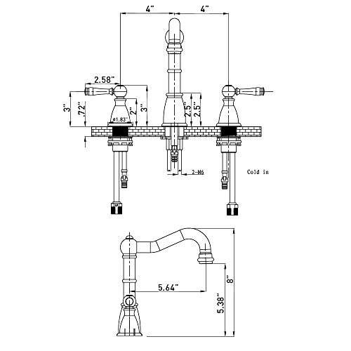 -. Feature : Oil Rubbed Bronze Finish / Solid brass construction (faucet body) gives long lasting durability / Valve included / Hot and cold water supply lines included / Designed for 3-hole installation: 8 - 15 widespread
