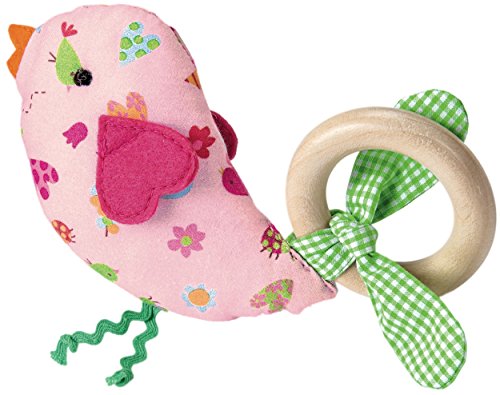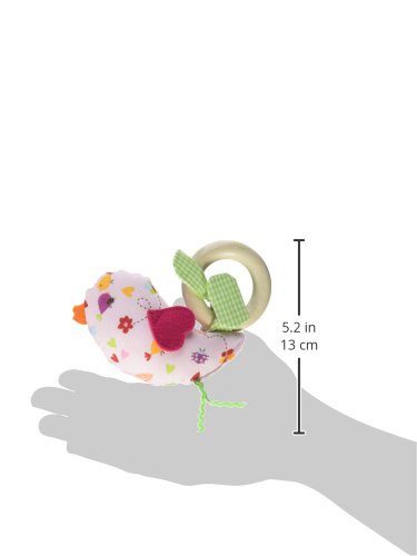 Busy hands and feet are always looking for new toys and ways to play. This "In the Garden" Wooden Grabbing Toy with Bird ring toy is sure to satisfy the little adventurous child in your family as they discover things that move and play in the world around them. Suitable for use with tummy time play mats, attached to strollers or car seats, or simply on its own. Grabbing toys are an excellent way to introduce children to developing finger strength and connecting hand-eye coordination to movement. This birdie ring toy is designed with sweet features such as multiple colors and textures and to sound awareness through a fun squeaky reward to increase children's cognitive awareness. Features include a removable ring and fully machine washable on a gentle cycle. Designed for independent play, or for caregiver and me time, this toy engages your child's imagination as they begin to discover the world around them. Made of excellent quality and sustainably sourced materials. Kathe Kruse products have been made in Europe since 1911 of carefully chosen, child appropriate materials and comply with the highest safety, environmental, and social standards.Feature
