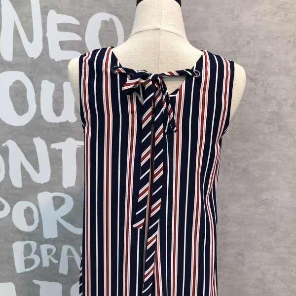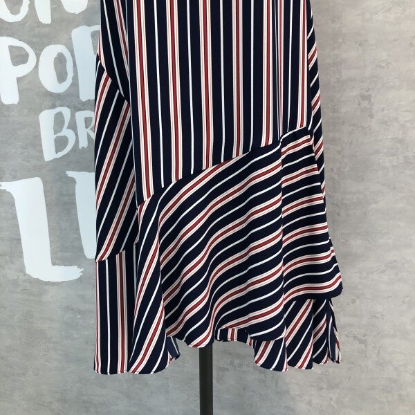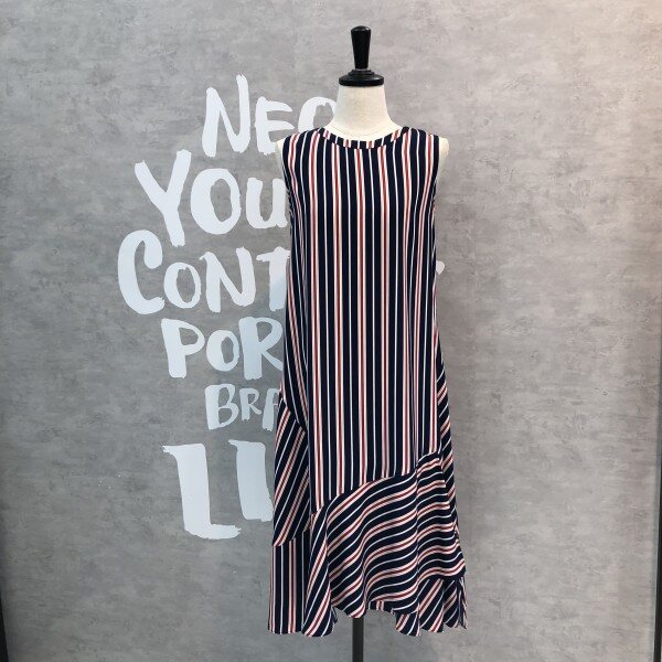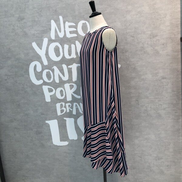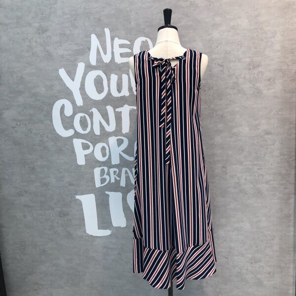 사이드슬릿의 플라운스 헴라인이 페미닌하며 레이스업 리본이 러블리한 원피스입니다
