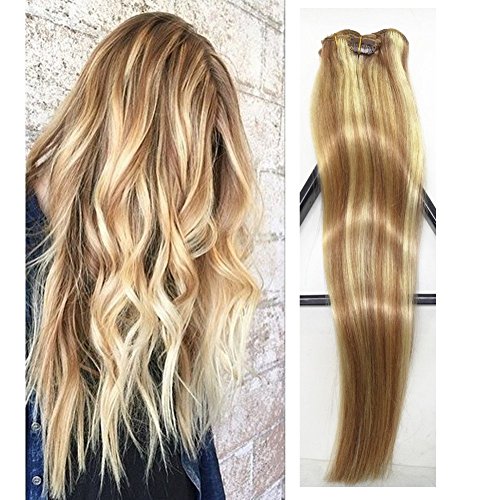 TheFashionWay Brazilian Human Hair Extensions Clip in Silky Straight Weft Remy Virgin Hair (18 inches, #12-613) by TheFashionWay