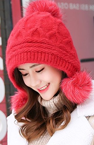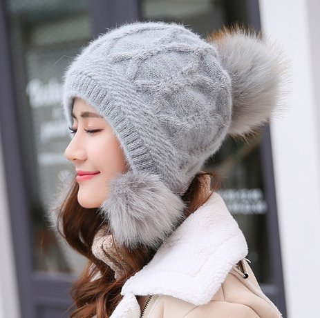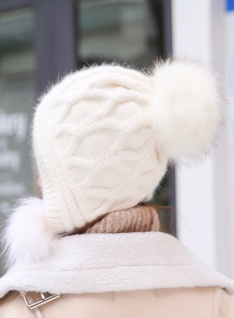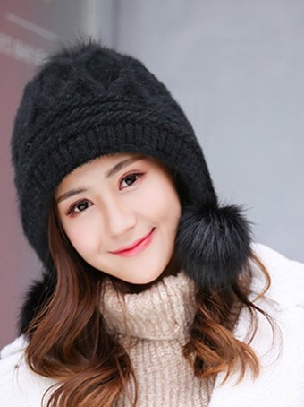 (NWEC)/Accessories/Hats/DIRECT FROM USA/NWEC Autumn and Winter With Thick Cashmere Knitted Hat Children Hats Ear Hair Ball Sweet Knitted Hat