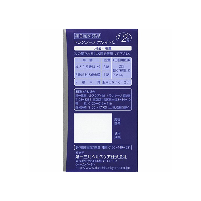 원본상품명: 【第3類品】トランシノホワイトC 180錠