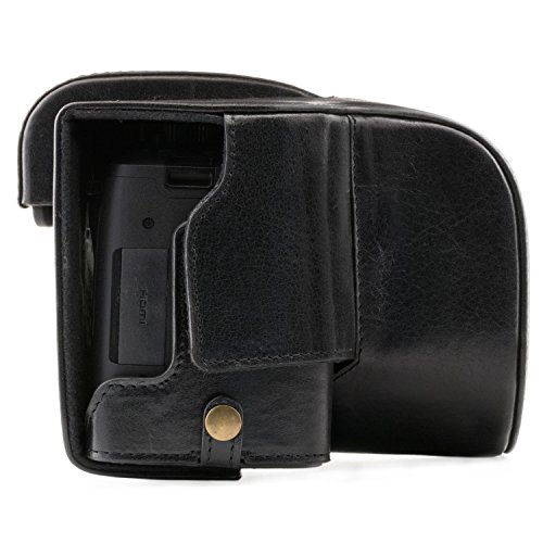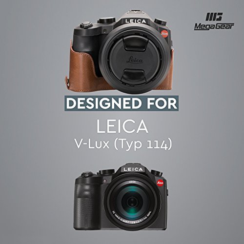 MegaGearImmer bereitEchtleder Kameratasche - Einfach zu Installieren, Stativ und peripheren Freundlich Zubehor - Kompatibel mitLeica V-LUX (Typ 114)
