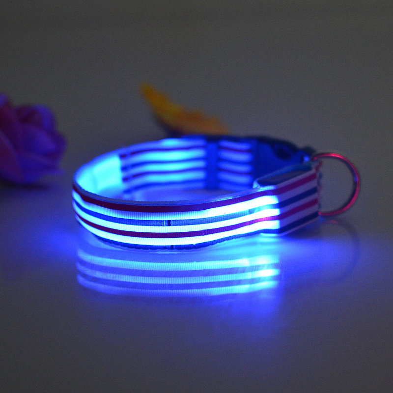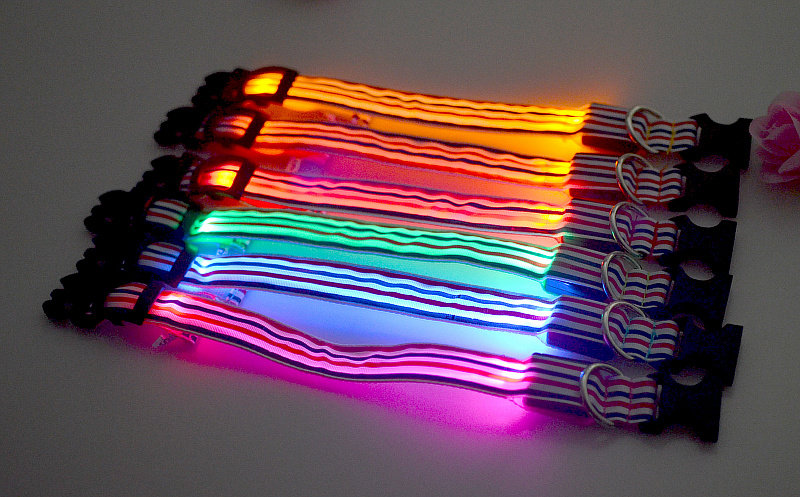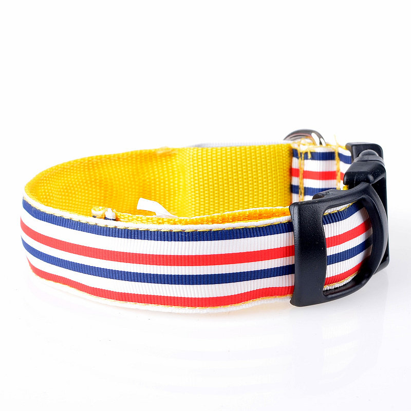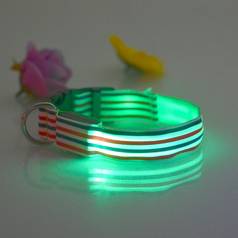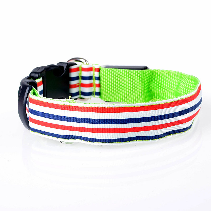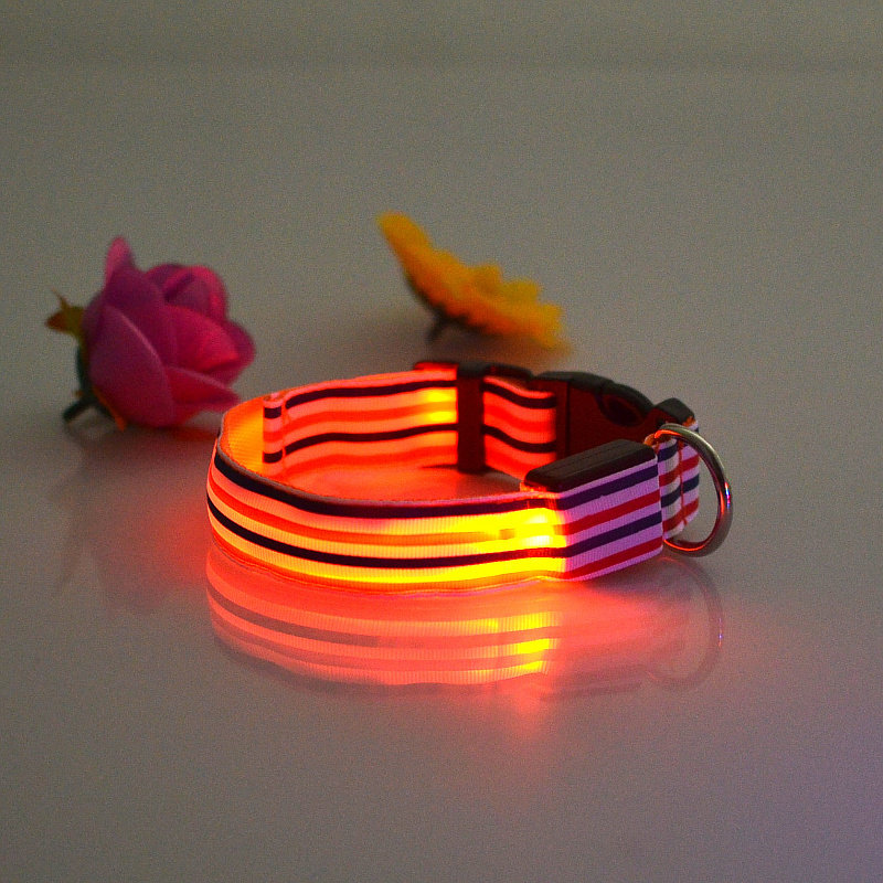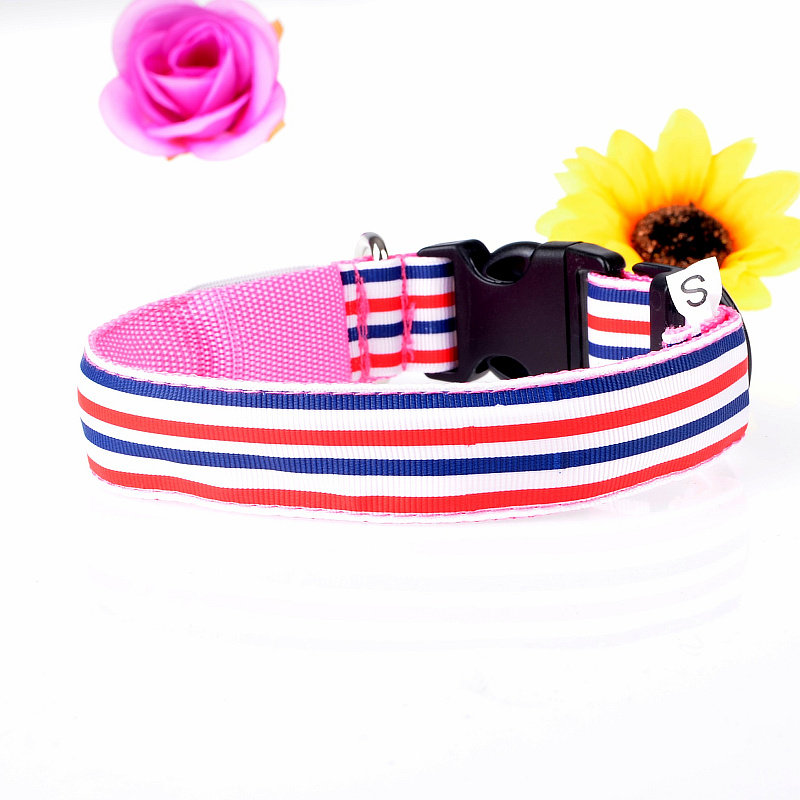 LED Nylon Striped Dog Collar for Cats Medium Large Dogs Pet Accessories Mascotas Cachorro Dog Collars Leash Chien Perros
