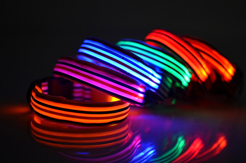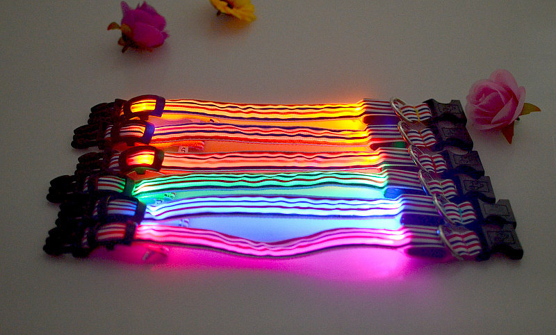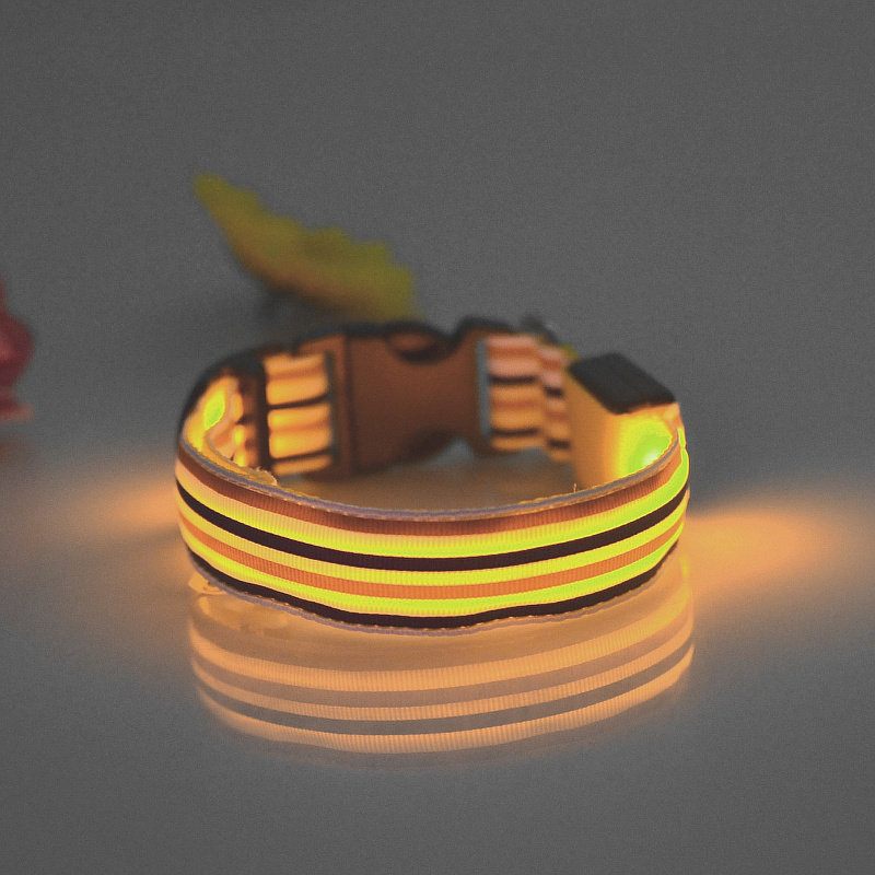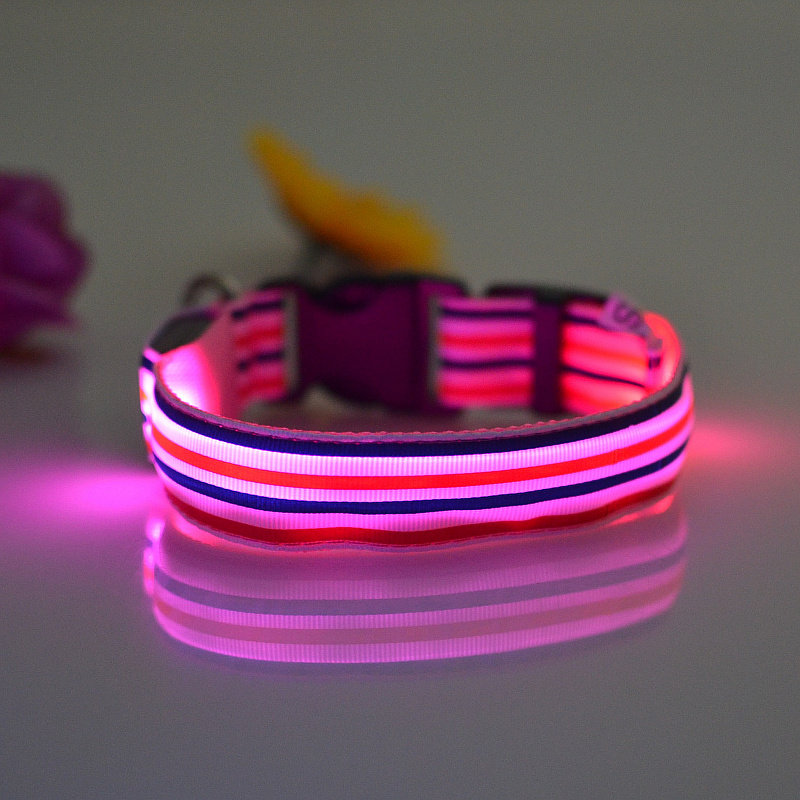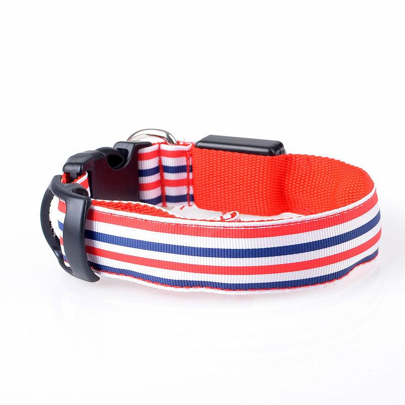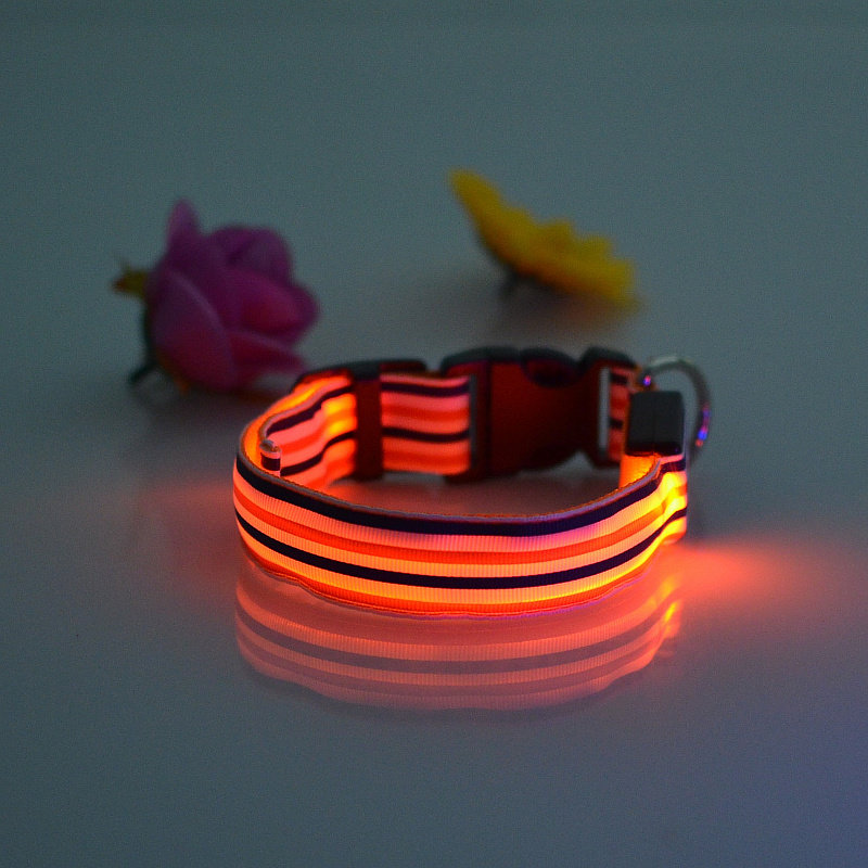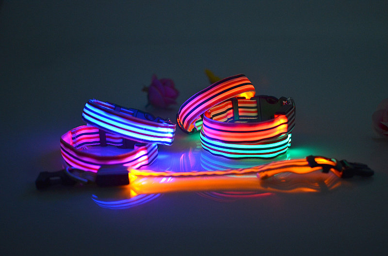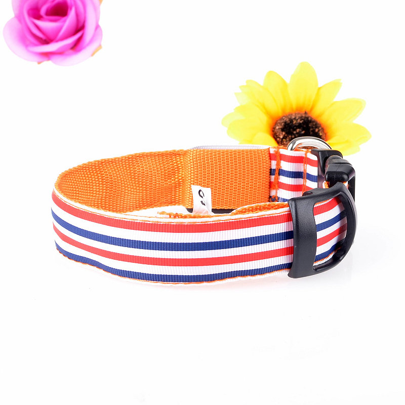 LED Nylon Striped Dog Collar for Cats Medium Large Dogs Pet Accessories Mascotas Cachorro Dog Collars Leash Chien Perros