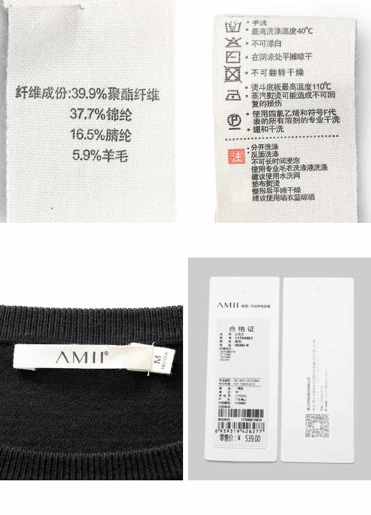 | 面料成分: | 39.9%聚酯纤维,37.7%锦纶,16.5%腈纶,5.9%羊毛 |