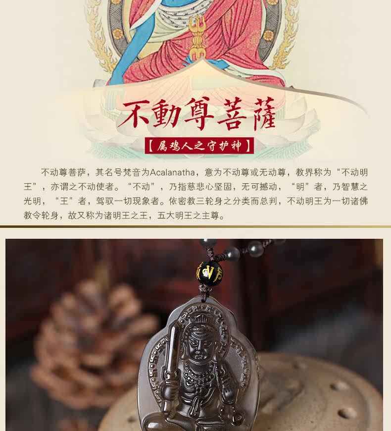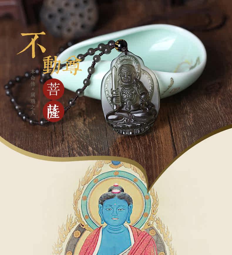 冰种黑曜石不动明王不动尊菩萨十二生肖鸡本命佛守护神吊坠