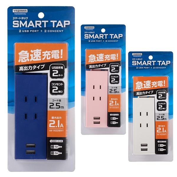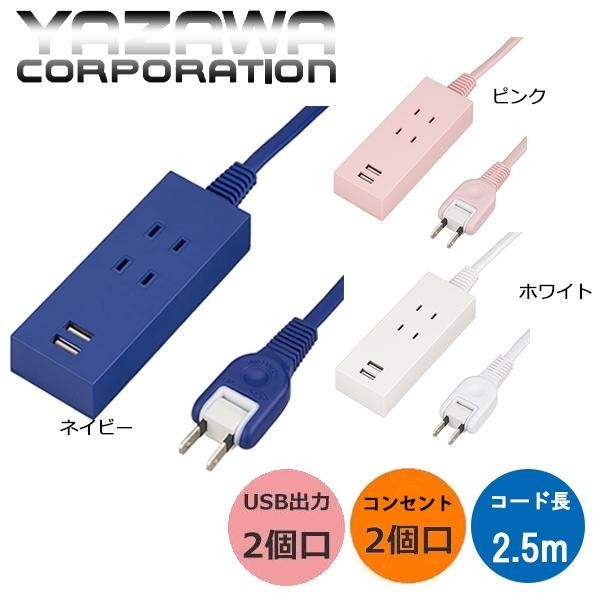 | 仕様 | コンセント口数:2口(合計1400Wまで) USBポート:2ポート(合計2.1Aまで) 絶縁カバー付きプラグ(耐トラッキング仕様) プラグ形状:スイングプラグ(180度可動) コード長:約2.5m 取扱説明書(台紙に記載) |
