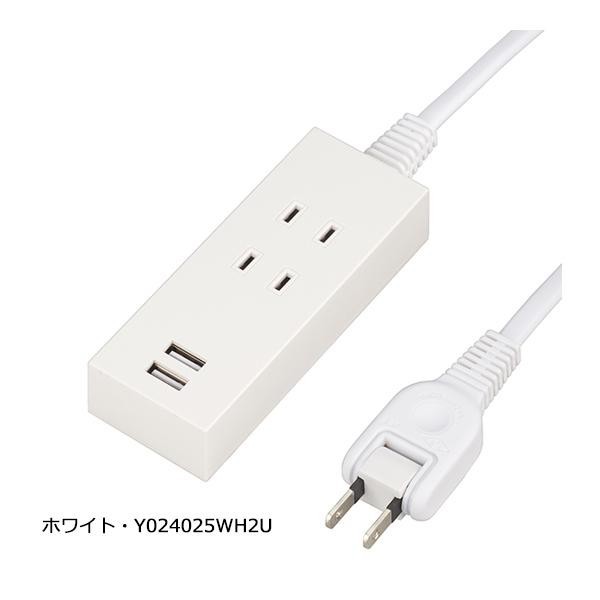 | スマートフォンなどのデジタル機器に直接充電が可能なUSBポートが2個!!コード長さは2.5mで、プラグはホコリや湿気によって発生するトラッキング火災を予防する絶縁カバー付きです。 |