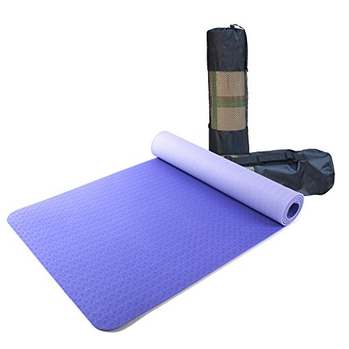 Eco Friendly Non Slip Reversible Exercise Yoga Mat for Pilates Fitness and Workout with Carrying Strap and Net Bag