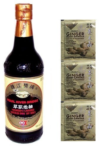 Pearl River Bridge Mushroom Flavored Superior Dark Soy Sauce 16.9Fl Oz Plus a Free Gift Instant Ginger Honey Crystals