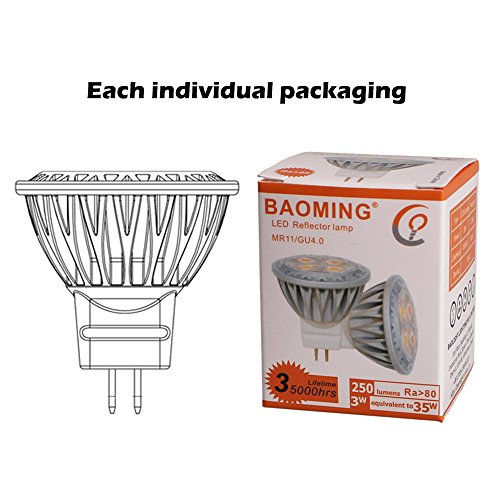 *** Excellent replacement for standard 12V 35W 2700K MR11 Halogen bulbs with 3W 250lm high-brightness. BAOMING MR11 is Diameter 35mm* Height 38mm (1.38x1.49 inch) with GU4.0 base.BUT not suitable for MR16 LED bulb two-pin base(diameter 50mm).