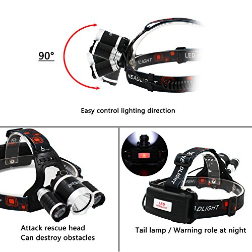 Adjustable: Head up and down can adjust 90 degrees, Control of lighting position, use more convenient and flexible. The back of the unique red LED warning light design ensures safety in the dark.