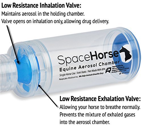 - ► THE SPACEHORSE EQUINE AEROSOL CHAMBER — is Anti-Static, BPA Free, Dishwasher Safe & includes a strong, durable silicone mask that will fit any horse. With the lowest resistance & most highly optimized breathing valves in the world, you can rest assure that your horse gets to catch a breath during an asthma attack or for daily maintenance…