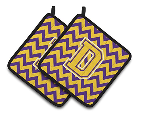 Caroline's Treasures Letter D Chevron Purple & Gold Pair of Pot Holders CJ1041-DPTHD, 7.5HX7.5W, Multicolor