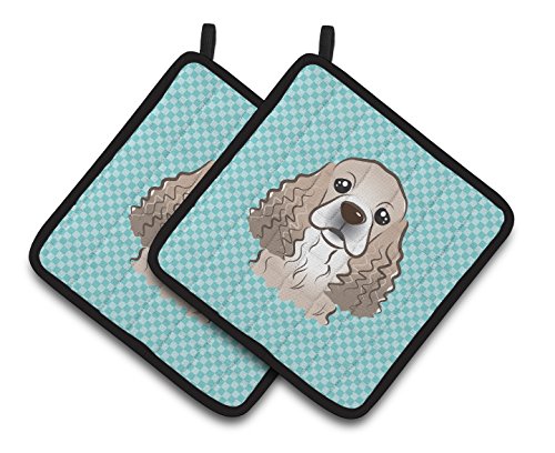 Caroline's Treasures Checkerboard Blue Cocker Spaniel Pair of Pot Holders BB1154PTHD, 7.5HX7.5W, Multicolor