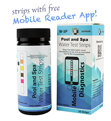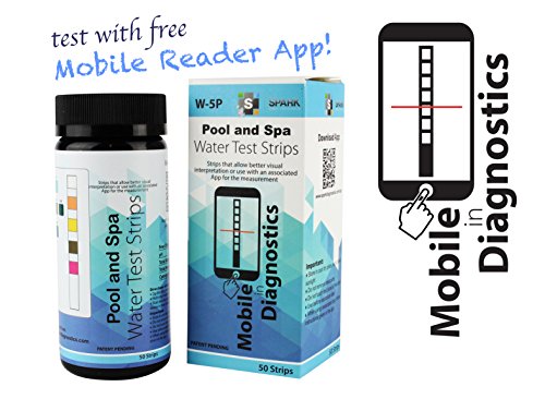 -. Title : Spark Diagnostics W-5P 5 Way Pool & Spa Test Strips with Smartphone App – 50 ct Water Test Kit, Tests Free Chlorine, pH, Hardness, Alkalinity, and Cyanuric Acid Levels with Instant Reader App