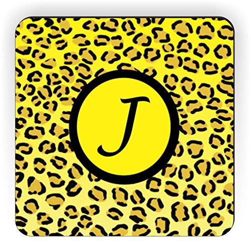 Rikki Knight Letter "J" Initial Yellow Leopard Print Monogrammed Design Square Fridge Magnet