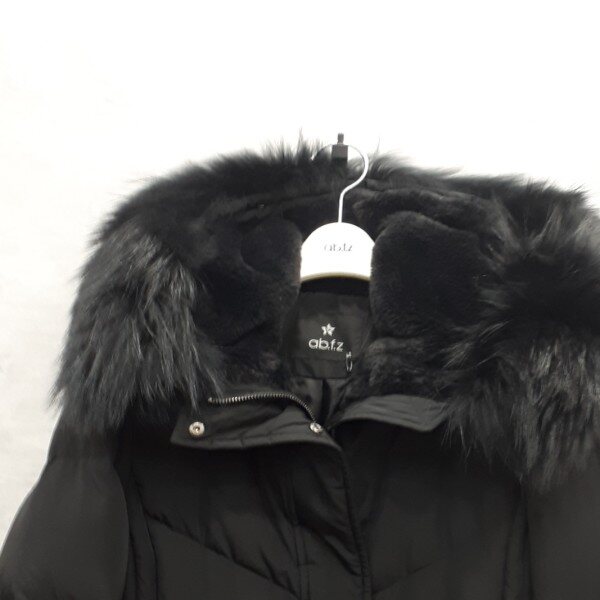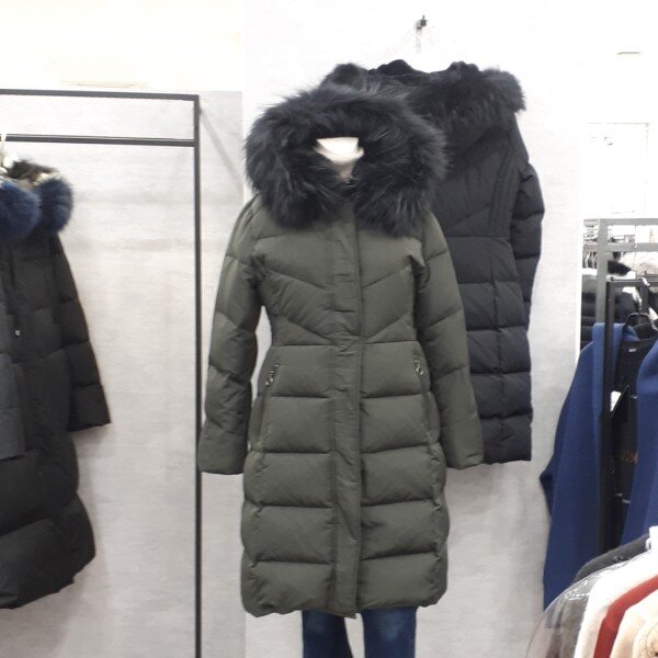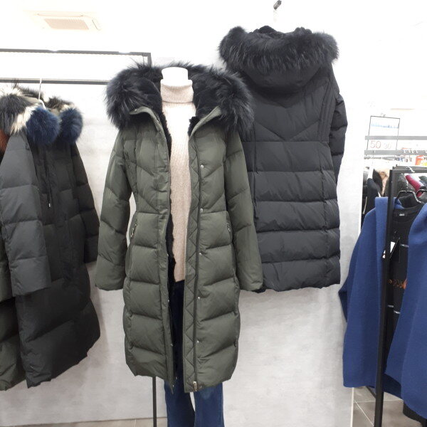 라쿤털후드에 라인이 슬림한 오리털패딩. 앞 안감.후드 안에 퍼가 있어요