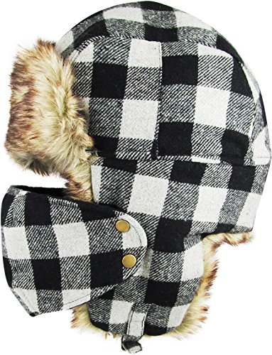 | Buffalo Plaid Aviator Trapper Hat Trooper Winter Cap Ski |