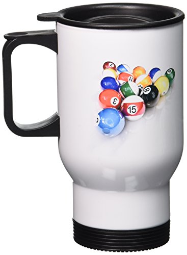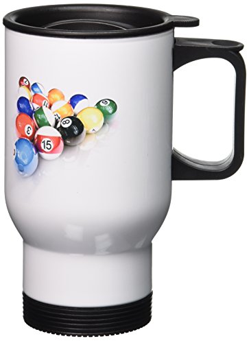3dRose Billiards Balls Pool Travel Mug, 14-Ounce, Stainless Steel