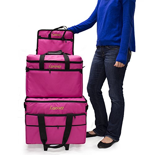 -. Binding : Office Product -. Brand : Luova -. Color : Pink -. EAN : 0708038731728 -. Feature : "Louva" meaning to create or having the ability to create is the theme in our new line of sewing and crafting lage that you will enjoy for years to come. / Whether you are going across town or across the country the durable yet affordable Louva lage will protect your machine on the way. / Fully padded for complete protection / Dual wheels per side for added stability / *Machine and accessories shown not included -. Label : Luova -. Manufacturer : Luova -. Model : L19C-PK -. MPN : L19C-PK -. PackageQuantity : 1 -. PartNumber : L19C-PK -. ProductGroup : Art and Craft Supply -. ProductTypeName : ART_SUPPLIES -. Publisher : Luova -. Studio : Luova -. Title : Luova 19" 3 Piece Rolling Sewing Machine Trolley Set in Pink -. UPC : 708038731728