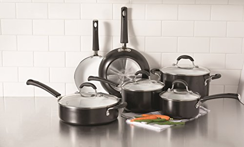 -. Feature : Oneida Aluminum Non-stick 10pc set includes: 1.5qt covered saucepan, 2.5qt covered saucepan, 3qt covered saute pan, 8" fry pan, 10" fry pan, and 5qt covered stockpot. / Durable heavy guage aluminum vessels promote fast and even heating without hotspots / Ceramic coating provides a superior non-stick performance and is PFOA/PTFE free. / Tempered glass lids allow for monitoring the cooking process without lifting lids and releasing moisture. / 10 year warranty