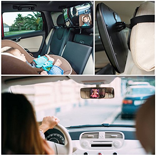 -. Feature : 360-DEGREE ADJUSTABILITY - The mirror is connected to a pivoting backrest attachement which allows for full maneuverability in all angles of your vehicle so you are comforted with the ease of viewing your rear facing baby car seat. / SAFETY - When we design our products, the one thing we have in mind as our top P.R.Iority is your precious baby and its safety. That is why we have designed this mirror with a shatter proof acrylic glass surface so it can withstand any impact anytime. Have a piece of mind knowing your precious cargo is safe at all times. / INSTALLS IN SECONDS, NO CONSTRUCTION REQUIRED The Mia and Moo Baby Mirror is pre-assembled; it attaches to any car, via easy to adjust straps, in seconds. No assembly required. It's fully adjustable and fits superbly with no noises or movement for premium comfort for you and your baby. Works with any seat & headrest configuration. / WIDE: Extra large and crystal clear mirror so you no longer have to worry about your baby feeling lonely or confused whilst you are on a car journey because your baby can see you whilst you engage, smile and keep them entertained, not just through sound but now through sight also. / We stand behind our product. We think you'll love it, and if you don't we'll give you a full refund, or a replacement, with zero question asked!